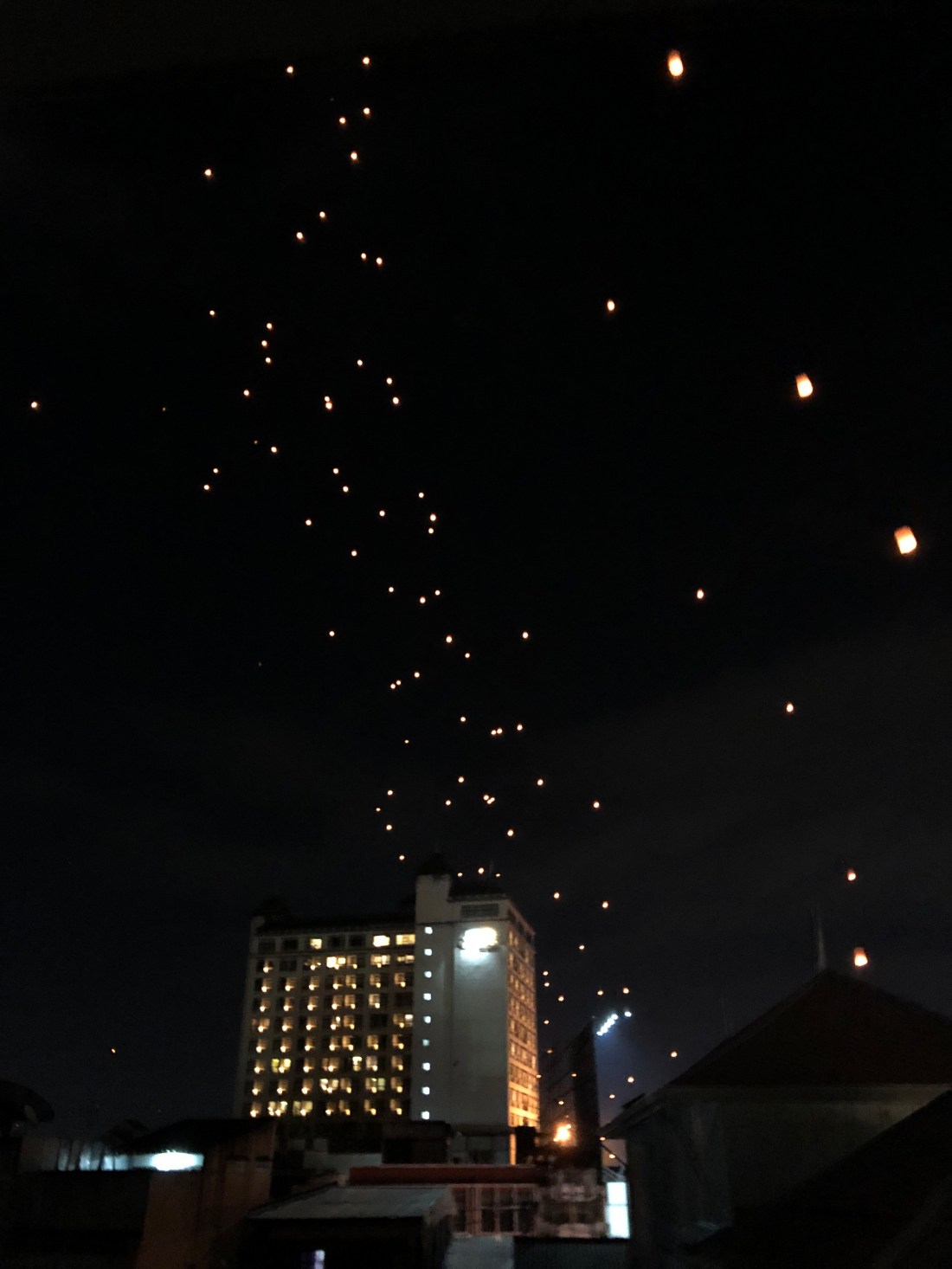 A mezzanotte un mare di lanterne si libra verso il cielo creando una costellazione di lucine che portano i sogni di tutta la città verso il cielo: anche noi accendiamo la nostra e la liberiamo in aria con i nostri sogni…buon anno!!