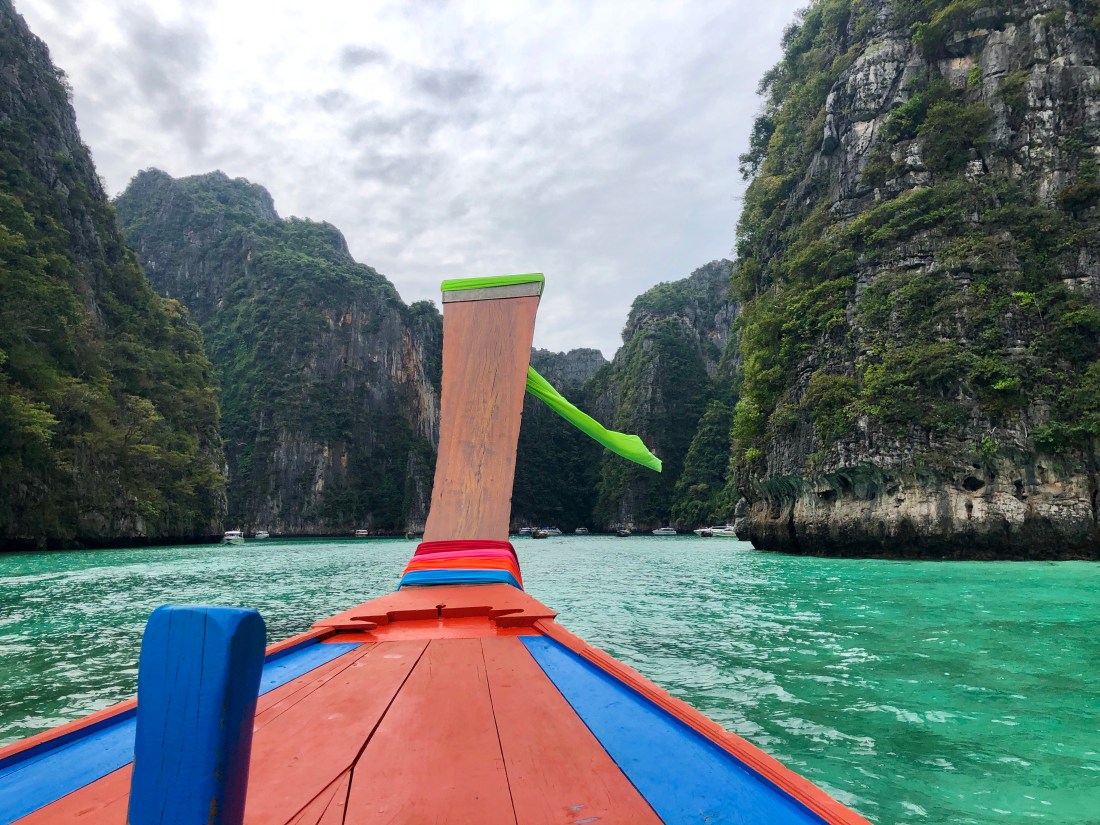 La tappa successiva è la famosissima Maya bay. Questa baia meravigliosa purtroppo è stata sovra sfruttata dal turismo quindi a giugno scorso il governo ha deciso di chiuderla per permettere ai coralli di ripopolarsi. Riusciamo a vederla da dietro le boe e, complice il fatto che sia completamente sgombra dalle barche turistiche, sembra davvero speciale!