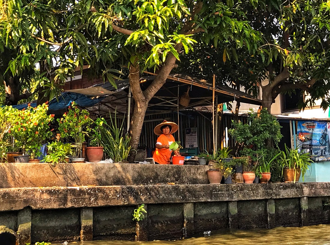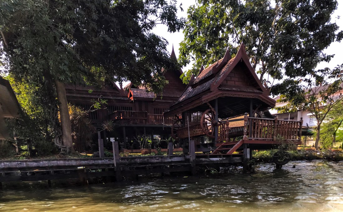Ristorate – anche se fa talmente caldo che rischiamo di scioglierci – camminiamo fino all’MBK, un centro commerciale con più di 2000 negozi di elettronica. Tutto intorno è pieno di centri commerciali, e anche se sono ancora tutti chiusi, le vie brulicano si gente. Per attendere l’apertura dei negozi ci dirigiamo verso un parco. Un signore tailandese, vedendoci perse ad un incrocio, si avvicina e ci chiede dove stiamo andando. Gli spieghiamo che stiamo cercando quello che sulla cartina sembrava un parco e che si rivela invece un campo da golf! Il signore ci suggerisce di affittare una barca per fare un giro sul fiume dato che è l’ultimo giorno delle celebrazioni per Natale e Capodanno e tutti i templi intorno al fiume sono in festa. Ci sembra onestamente interessato ad aiutarci e dopo uno sguardo d’intesa decidiamo di fidarci. Il signore gentile contratta per noi con un tuk tuk (naturalmente il miglior prezzo ottenuto in tutta la giornata) che ci accompagna ad un imbarcadero (Ratchawong Express Boat Peer).