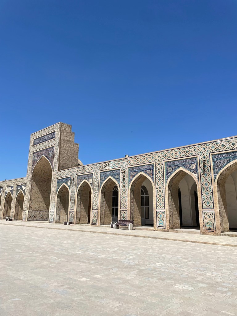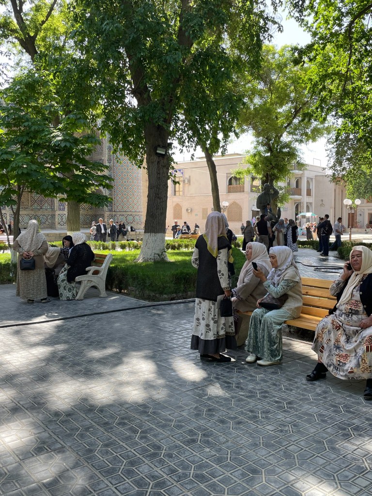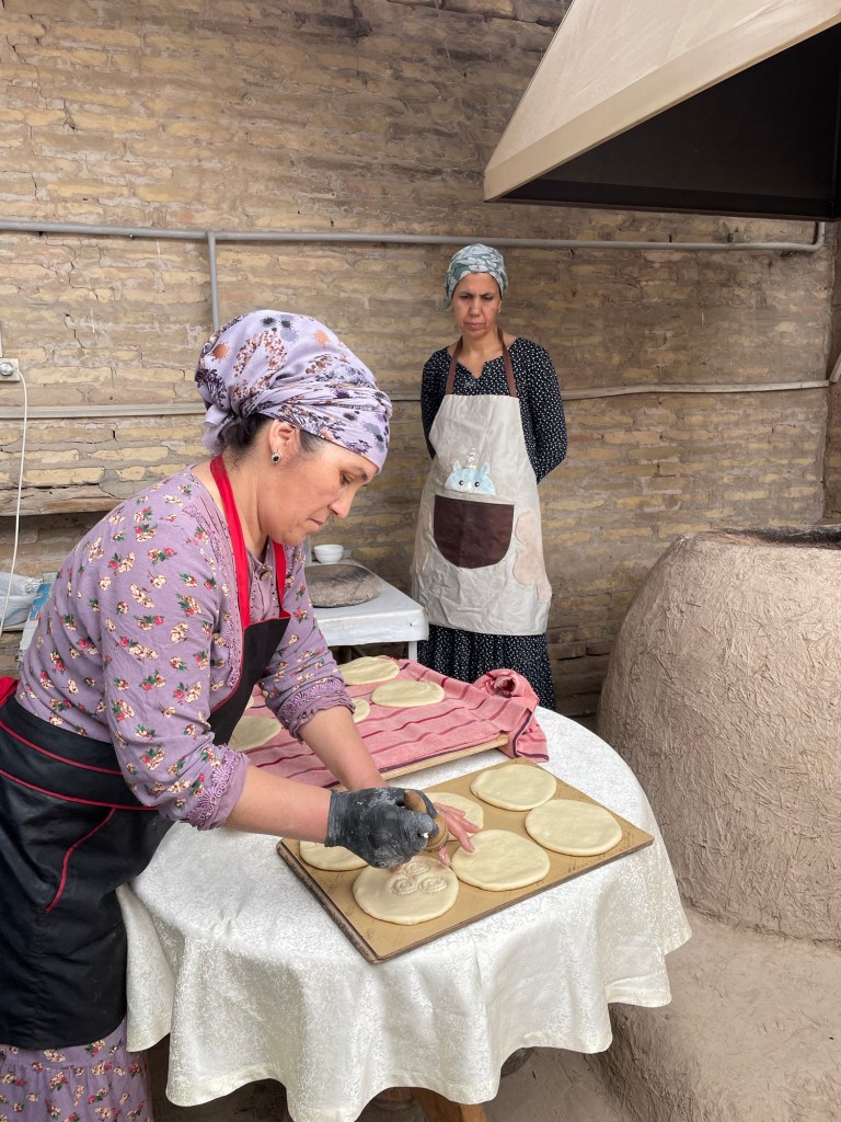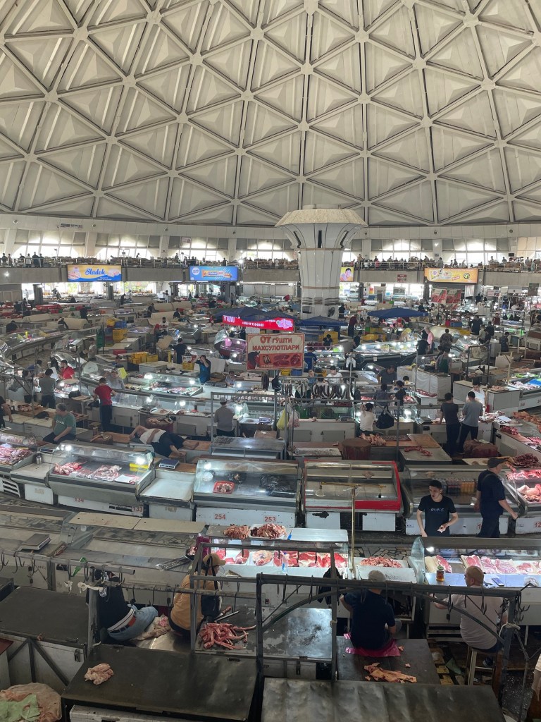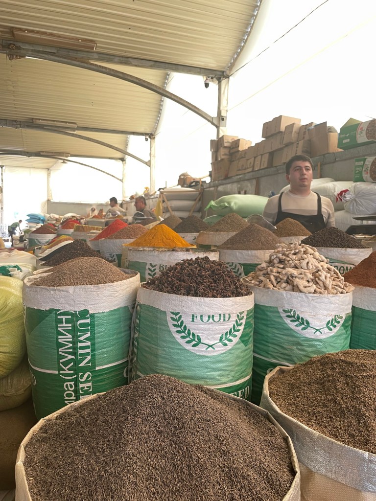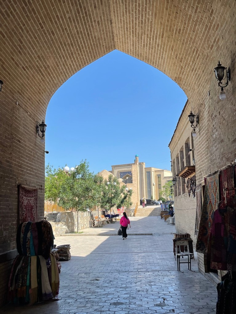 Ci fermiamo per pranzo e per un giretto al Bazar. La qualità dei souvenir non è un gran che ma mangiamo un buon pane sfogliato. In realtà è tutto quello che riusciamo a mangiare perché lo street food in Uzbekistan non è per niente sviluppato (l’unica cosa che si trova a volte sono i samsa, delle specie di fagottini di pasta ripieni di carne).