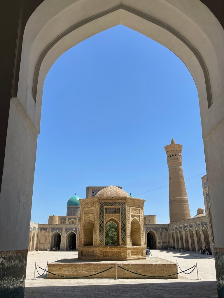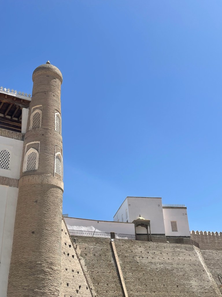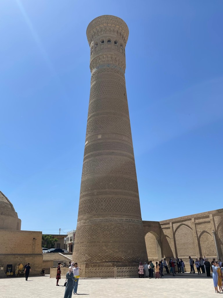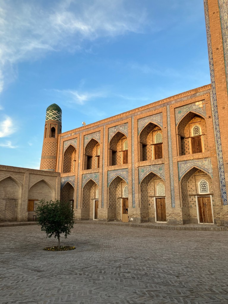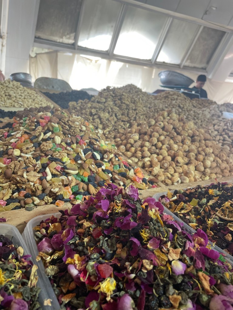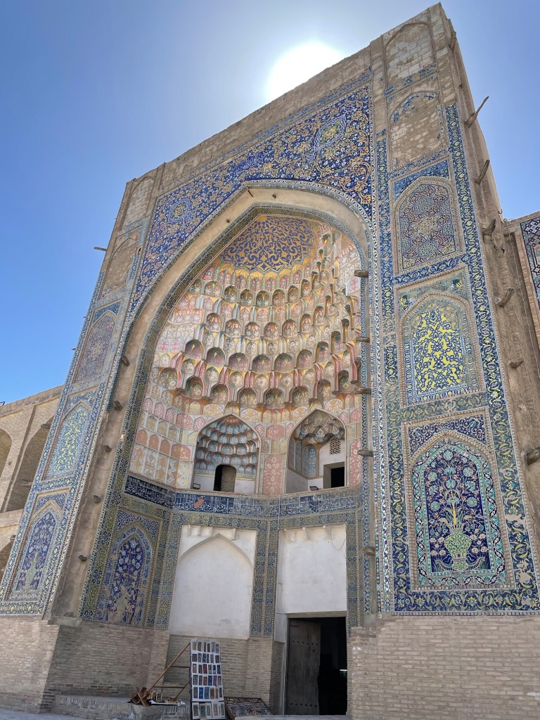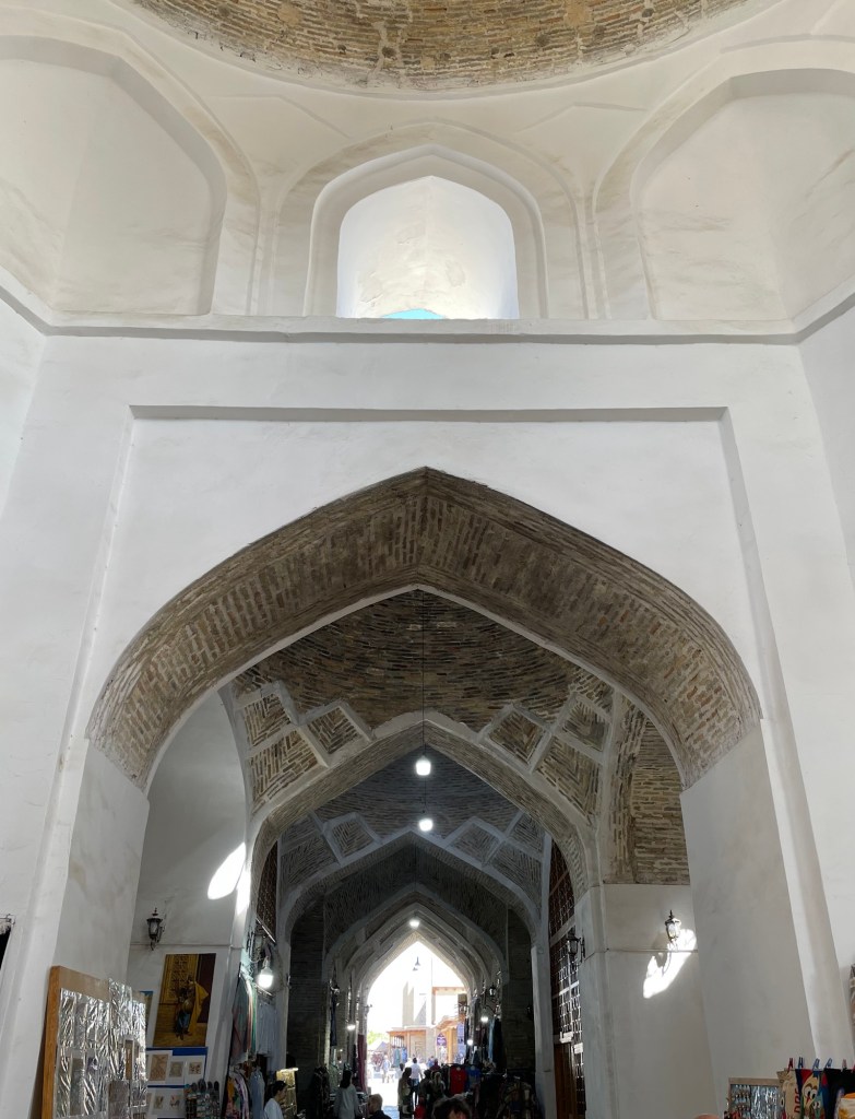 Ci fermiamo per pranzo e per un giretto al Bazar. La qualità dei souvenir non è un gran che ma mangiamo un buon pane sfogliato. In realtà è tutto quello che riusciamo a mangiare perché lo street food in Uzbekistan non è per niente sviluppato (l’unica cosa che si trova a volte sono i samsa, delle specie di fagottini di pasta ripieni di carne).