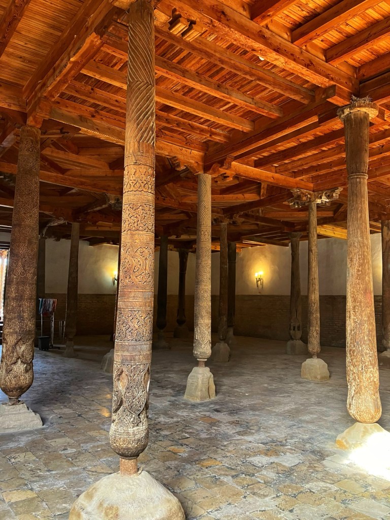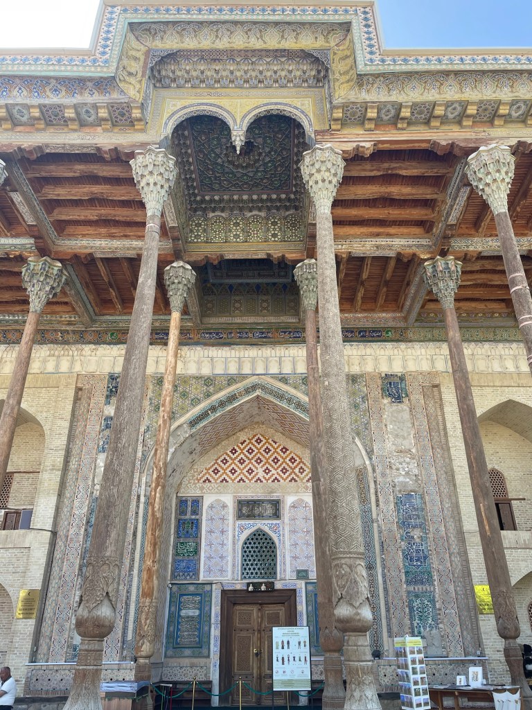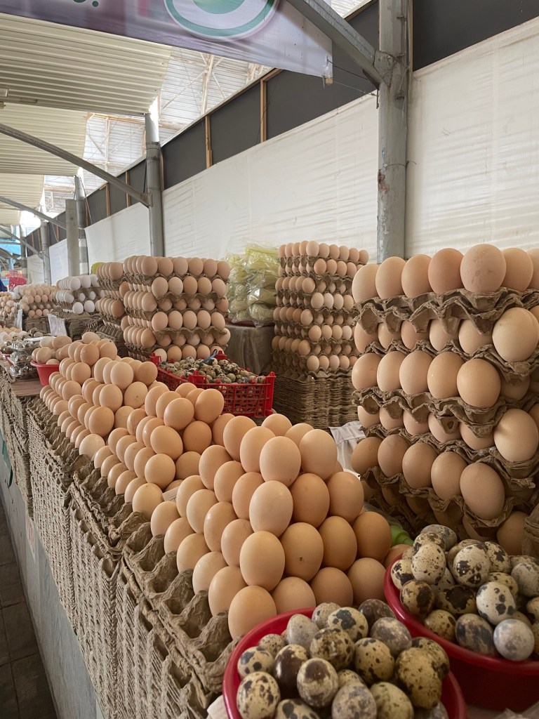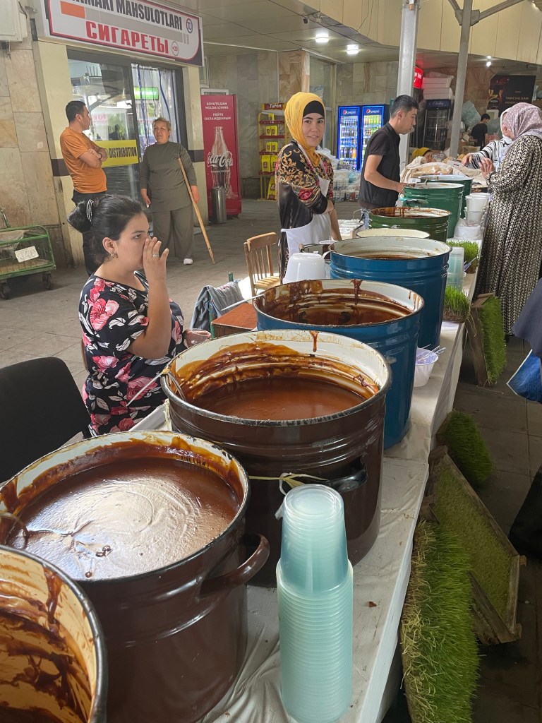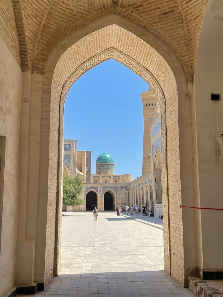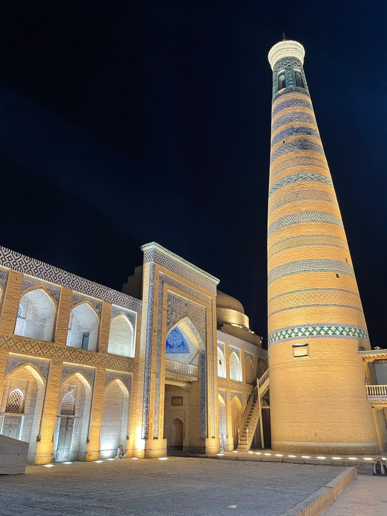 Ci fermiamo per pranzo e per un giretto al Bazar. La qualità dei souvenir non è un gran che ma mangiamo un buon pane sfogliato. In realtà è tutto quello che riusciamo a mangiare perché lo street food in Uzbekistan non è per niente sviluppato (l’unica cosa che si trova a volte sono i samsa, delle specie di fagottini di pasta ripieni di carne).