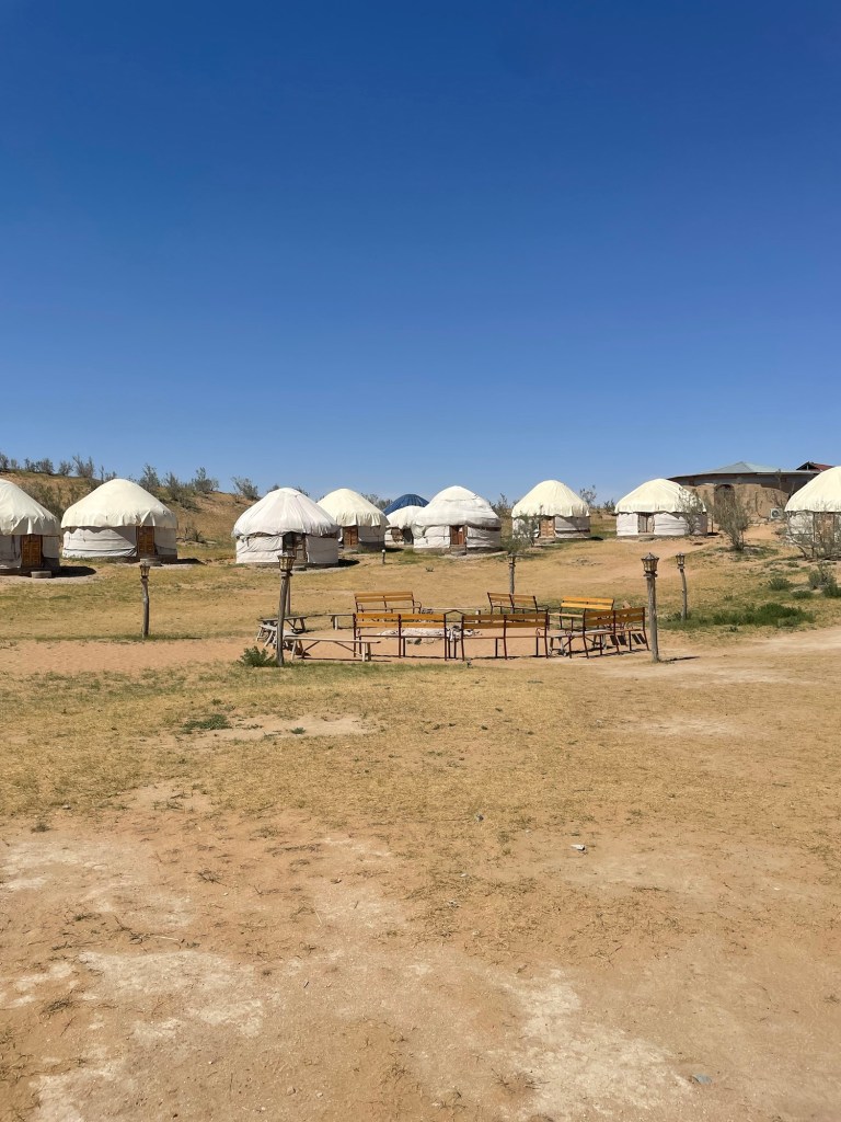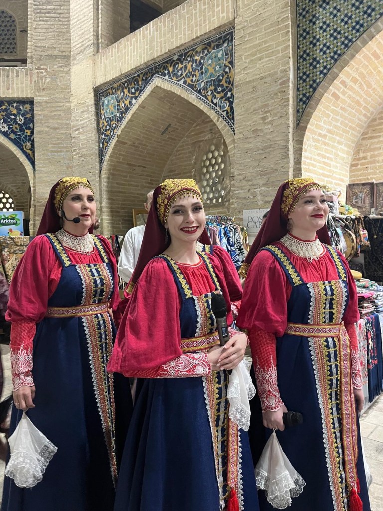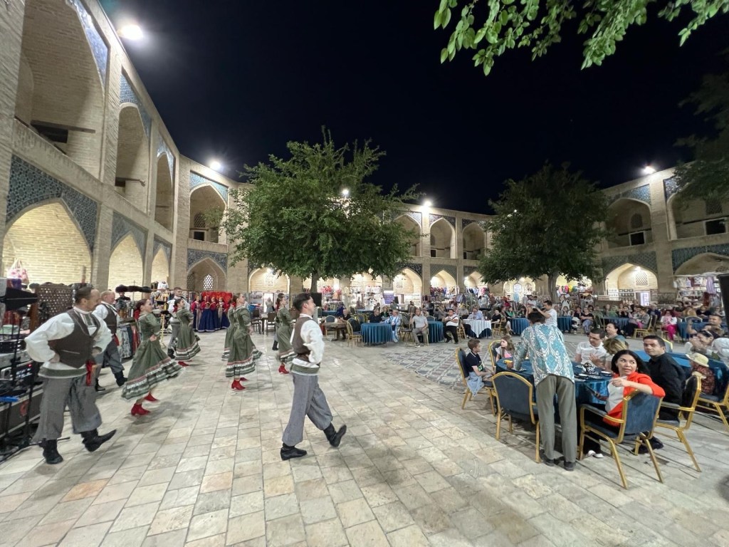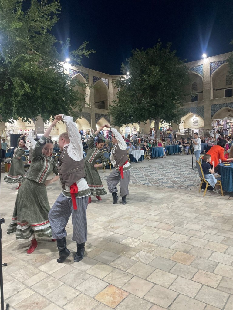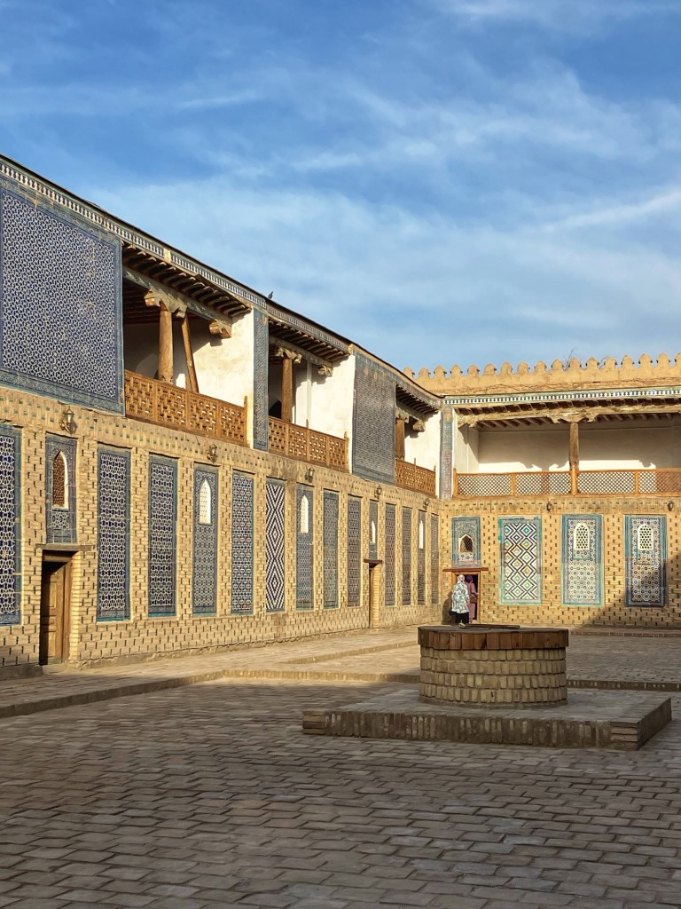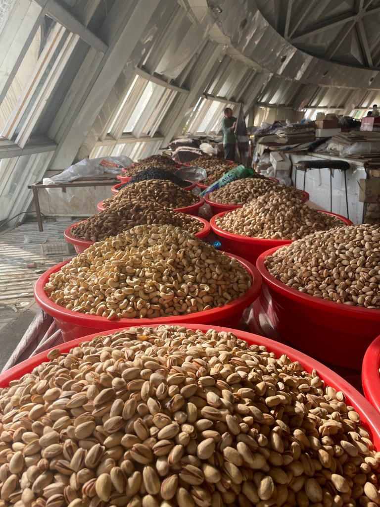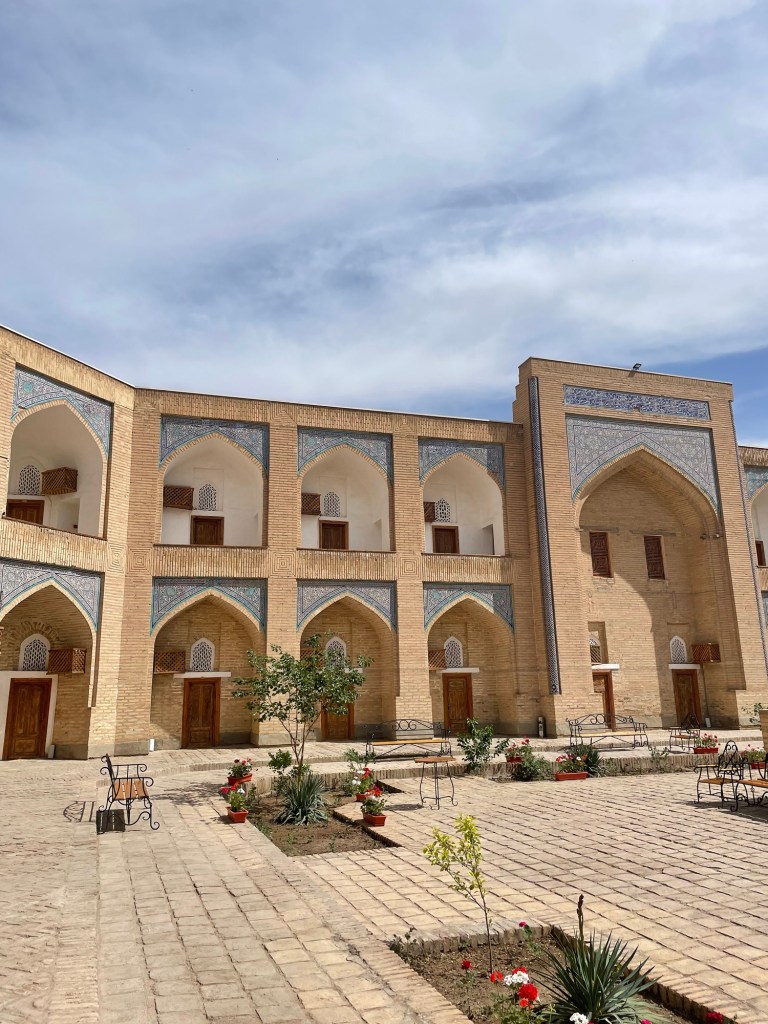 Ci fermiamo per pranzo e per un giretto al Bazar. La qualità dei souvenir non è un gran che ma mangiamo un buon pane sfogliato. In realtà è tutto quello che riusciamo a mangiare perché lo street food in Uzbekistan non è per niente sviluppato (l’unica cosa che si trova a volte sono i samsa, delle specie di fagottini di pasta ripieni di carne).