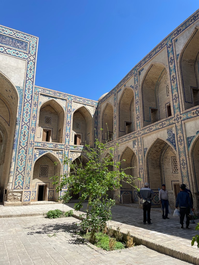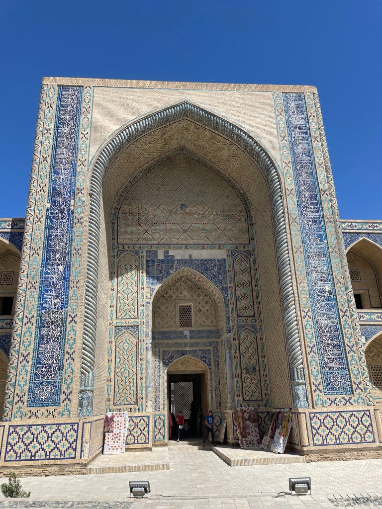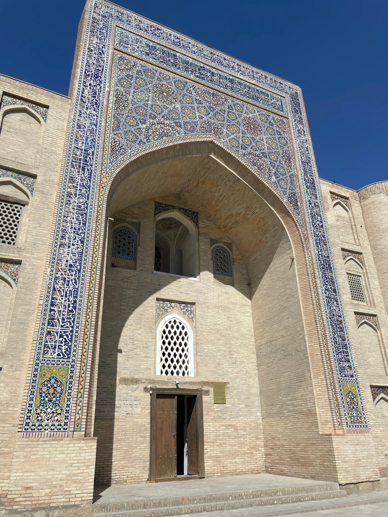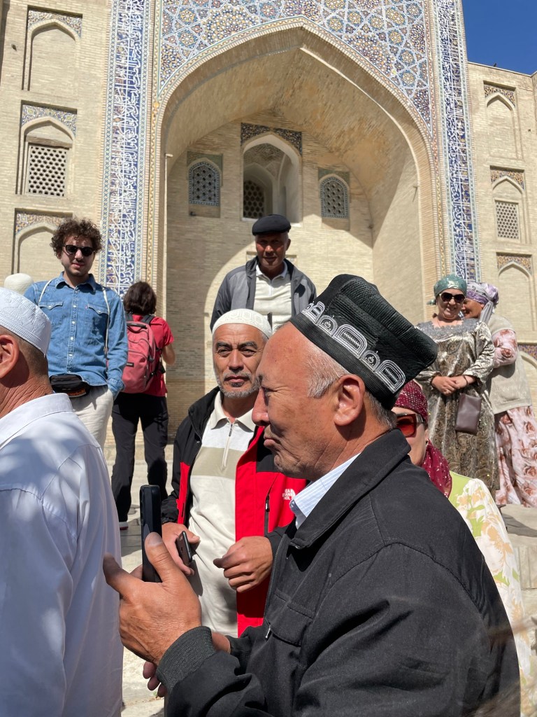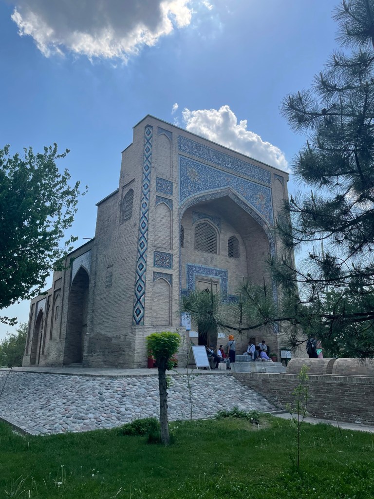Iniziamo la nostra giornata a Samarcanda dal mausoleo di Tamerlano. Qui, oltre alla tomba dell’emiro, c’era un albergo per accogliere i dervisci (asceti islamici) e una madrasa per i figli dei militari.