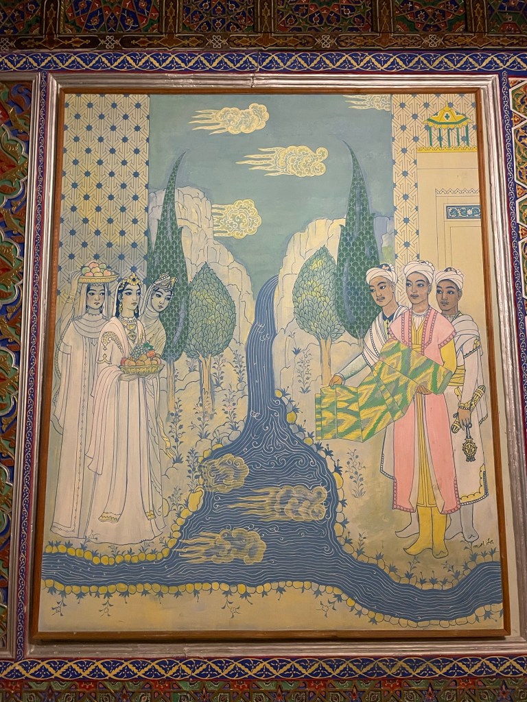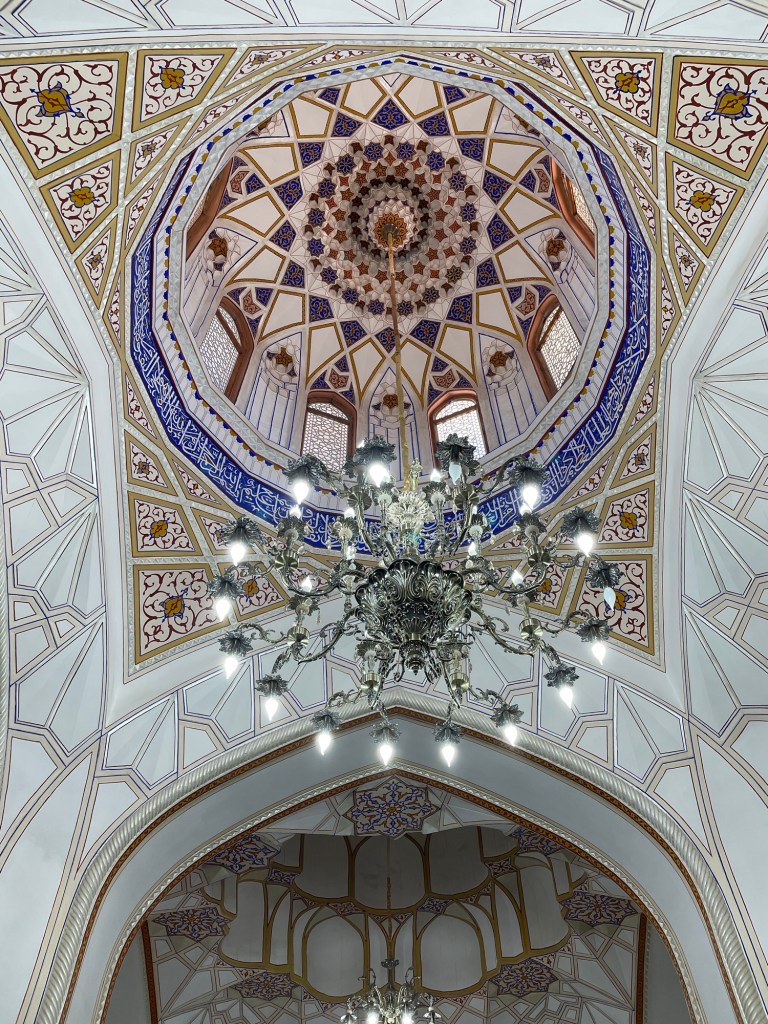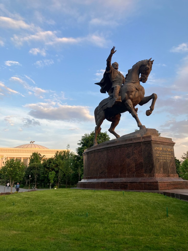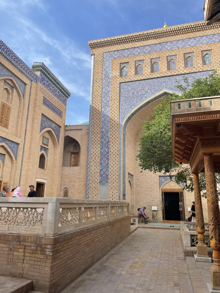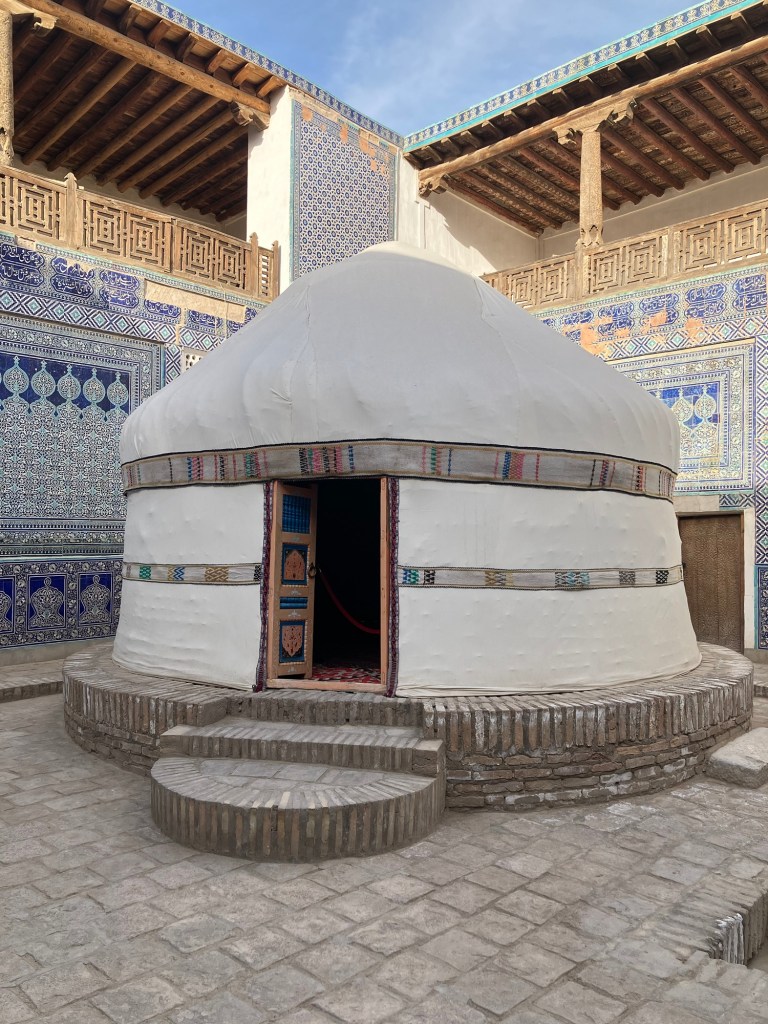 Iniziamo la nostra giornata a Samarcanda dal mausoleo di Tamerlano. Qui, oltre alla tomba dell’emiro, c’era un albergo per accogliere i dervisci (asceti islamici) e una madrasa per i figli dei militari.