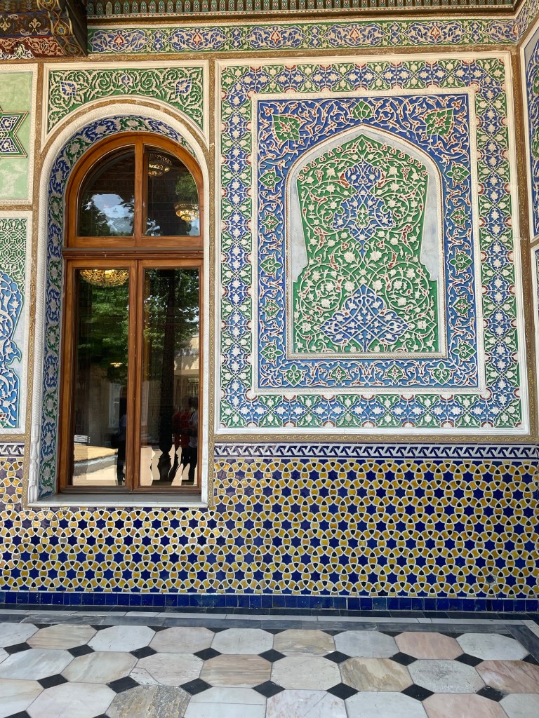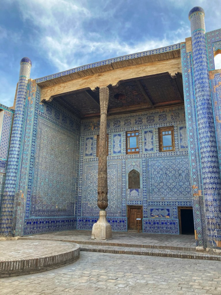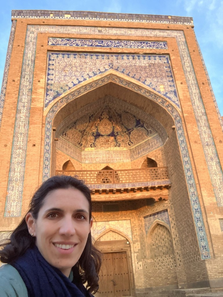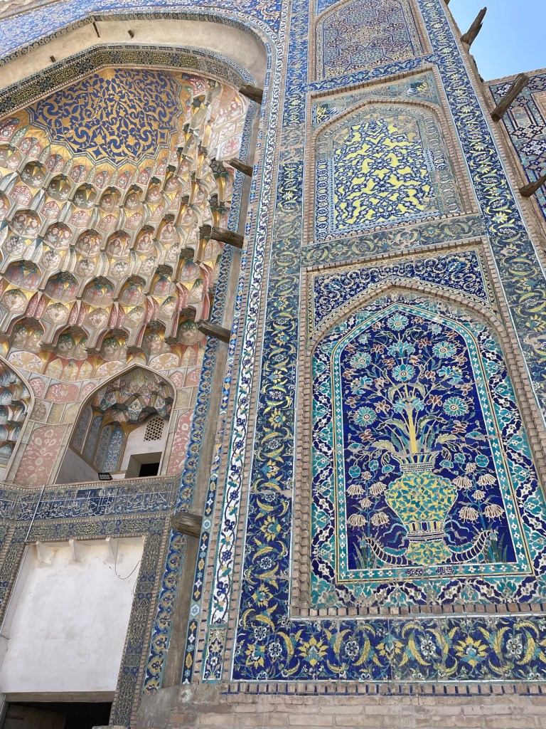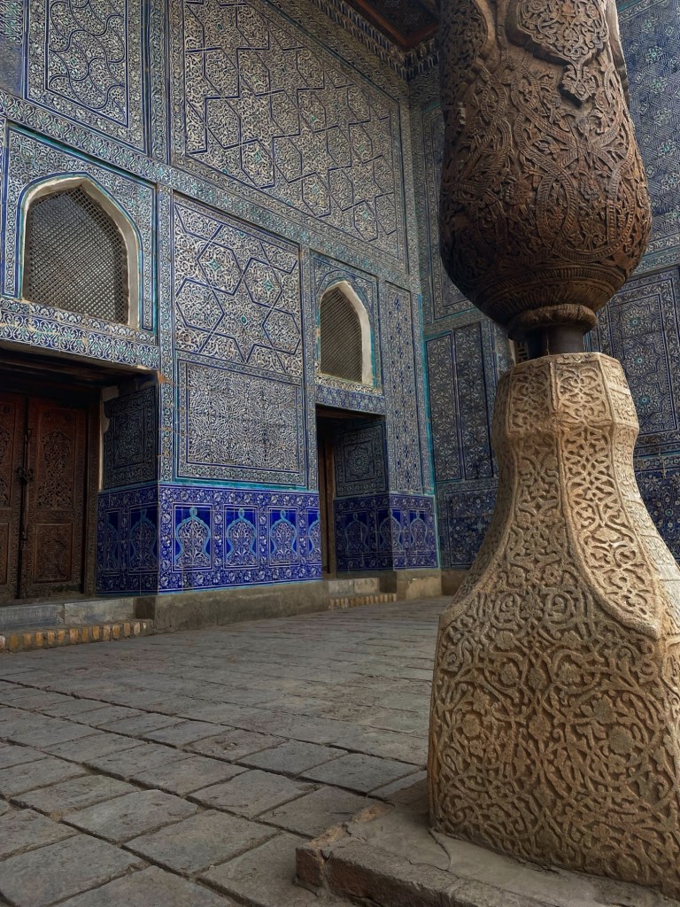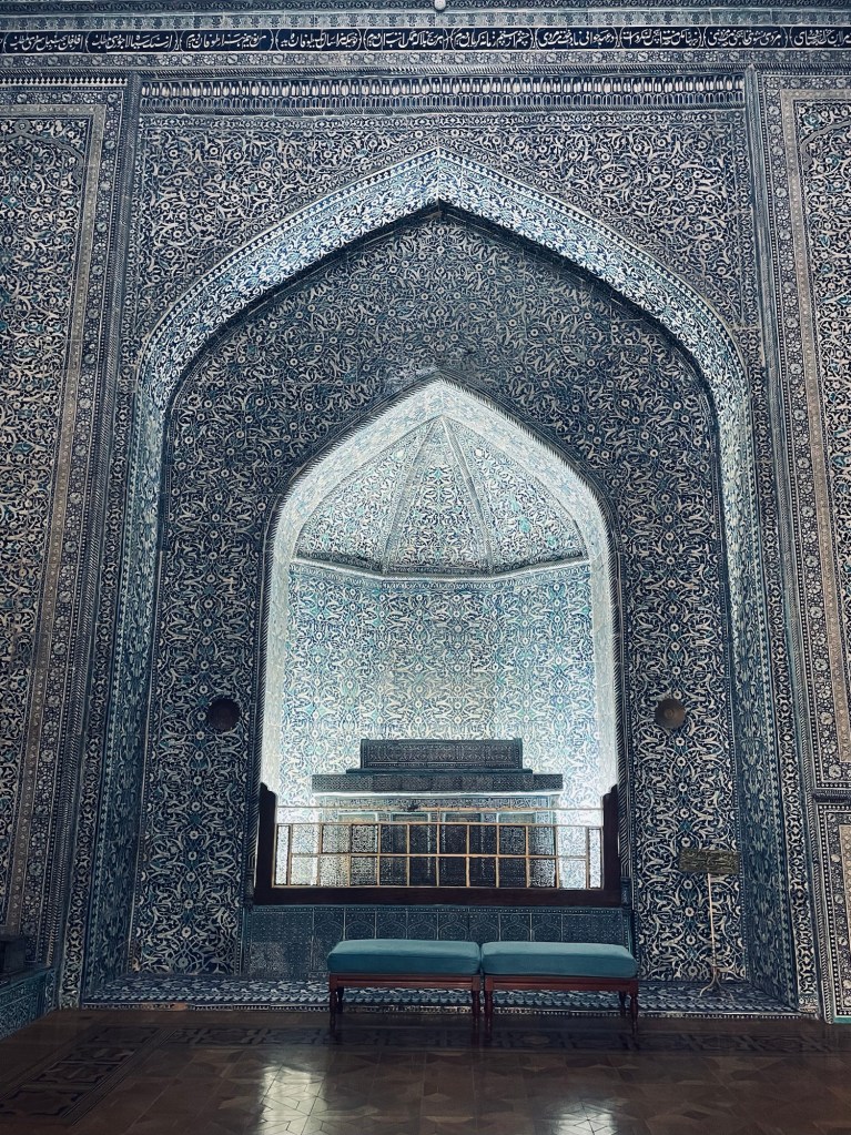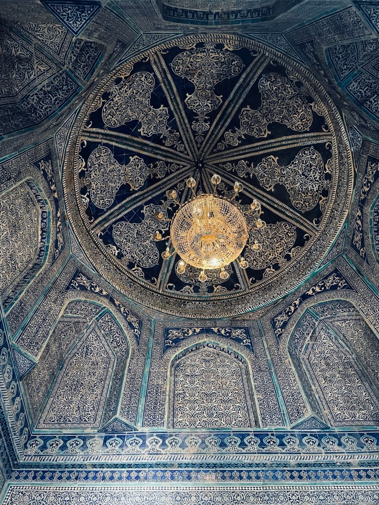 La necropoli è formata da una serie di mausolei, affiancati lungo una stradina, e da alcuni altri luoghi sacri tipo alcune moschee. Tutto è decorato con splendide maioliche, dai colori tipici, e si sviluppa verso l’alto come se andasse verso il cielo…che luogo meraviglioso!