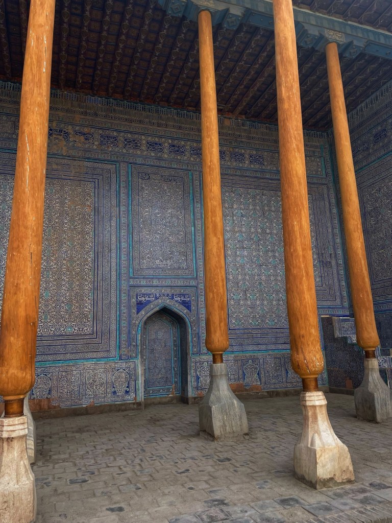 Legenda a parte, la moschea era uno dei più ambiziosi progetti architettonici dell’epoca ma ebbe dei grossi problemi strutturali e di scelta dei materiali e dopo poco la cupola e i minareti iniziarono a sgretolarsi. A metà del 20esimo secolo era ridotta a un cumulo di rovine ma i russi, riconoscendo l’importanza storica di questo luogo, come delle madrase di piazza Registan, procedettero ad un’importante opera di restauro (forse un po’ troppo massiccia ed invasiva ma che sicuramente ci permette oggi di proiettarci bene in quello che era lo splendore e l’imponenza di questo luoghi).